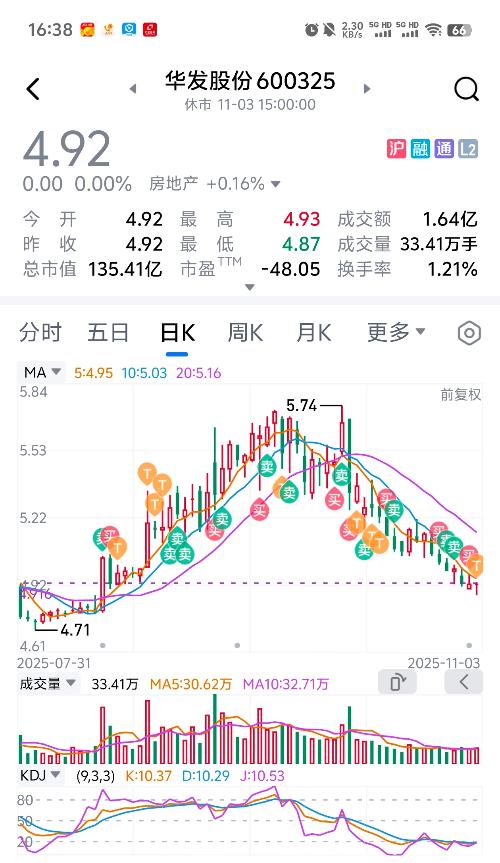 $华发股份(SH600325)$收盘如果不是4.92,股友集体折寿1年