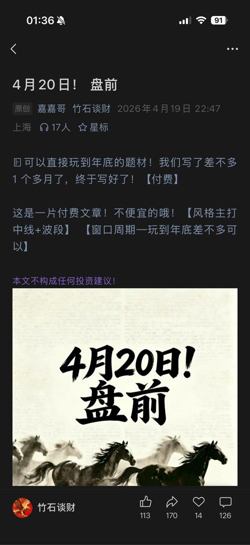 朋友们早上好、4.20日海哥周一早盘策略! 早盘策略:$天通股份(SH600330)$$合力泰(SZ002217)$$三安光电(SH600703)$ 当前持仓:龙蟠科技从周五到表现来看差点意思不过尾盘拉伸动作为今天的修复埋下了伏笔 美利云、大为科技还是那句话坚持就是胜利逻辑没错那就坚定点锚定五日线即可 免责声明:以上分析基于公开信息,不构成投资建议。市场有风险,决策需谨慎。
