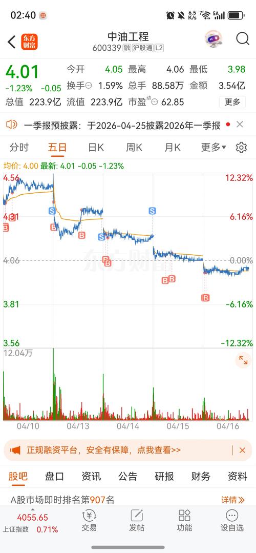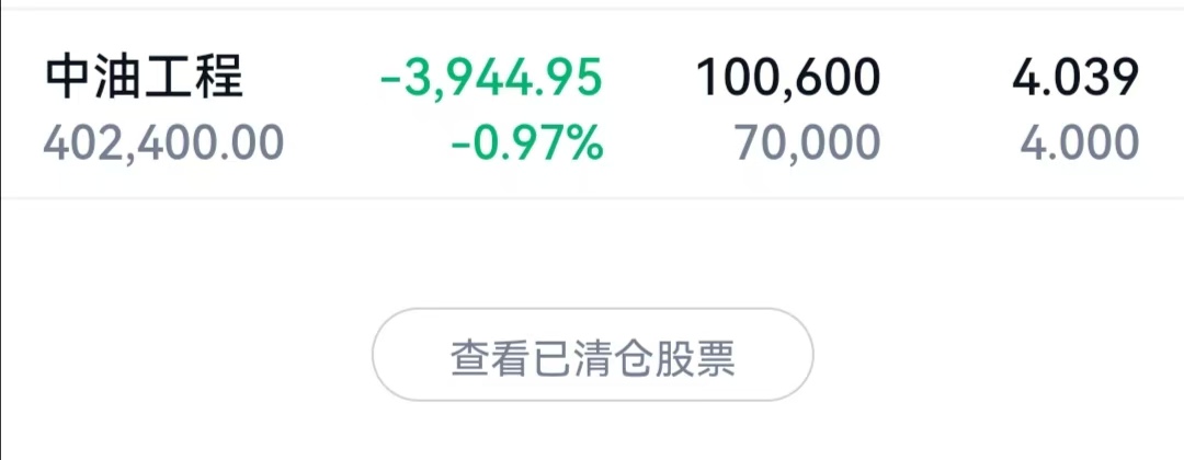 $中油工程(SH600339)$我没亏钱,倒T下来了。今天3.99加了一笔,明天再看情况卖。