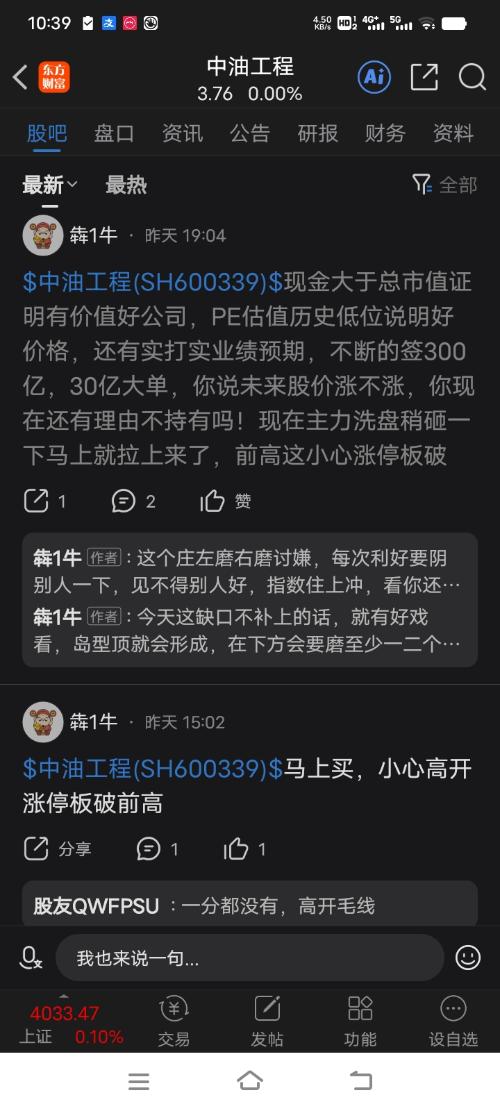 $中油工程(SH600339)$亚洲中心,未来发展重心,新疆板块,股票价格低于净资产,年年盈利,股票分红,蓝筹央企,国资大股东,这些就够了,4000点之上,要靠这种股票维稳拉升,基本上属于还没有大幅拉升的底部,买了,绝对不会亏