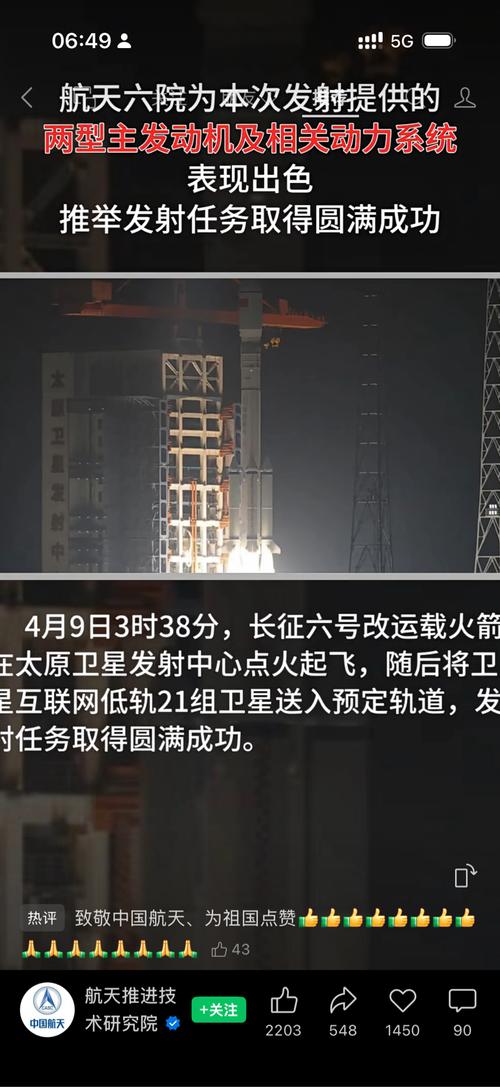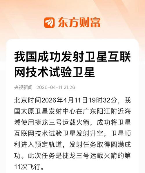 北京时间2026年4月11日19时32分,我国太原卫星发射中心在广东阳江附近海域使用捷龙三号运载火箭,成功将卫星互联网技术试验卫星发射升空,卫星顺利进入预定轨道,发射任务取得圆满成功。此次任务是捷龙三号运载火箭的第11次飞行。 $天银机电(SZ300342)$$航天动力(SH600343)$$顺灏股份(SZ002565)$