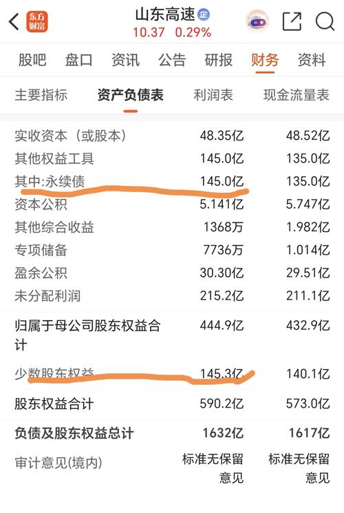 $山东高速(SH600350)$ 公司2025年年报有400多页,个人觉得公司实际的财务杠杆蛮高的。股东权益590.2亿元,扣掉少数股东权益145.3亿元,再扣掉权益工具-永续债145亿元,还剩300亿元还算是家人们的,却撑起了1632亿元的总资产。在最苛刻的算法下,家人们的权益乘数达到5.44倍=1632/300,用1-其倒数就是更熟悉的资产负债率,达到81.62%,肯定是很高的。 要不是202...