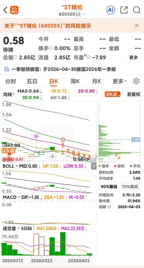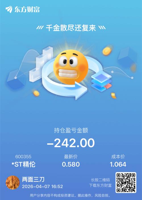 $*ST精伦(SH600355)$真的亏麻了啊,早知道不乱买了,100股自动扣款扣得只剩58元了