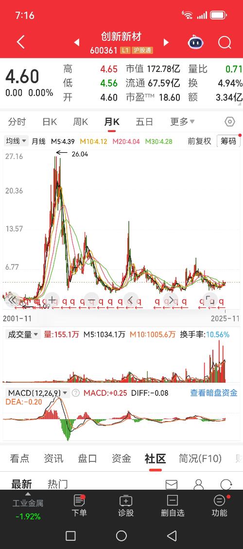 $创新新材(SH600361)$连续3天收盘4.6有意思