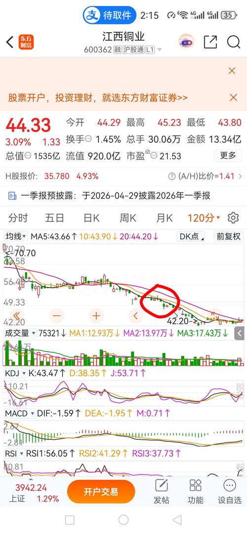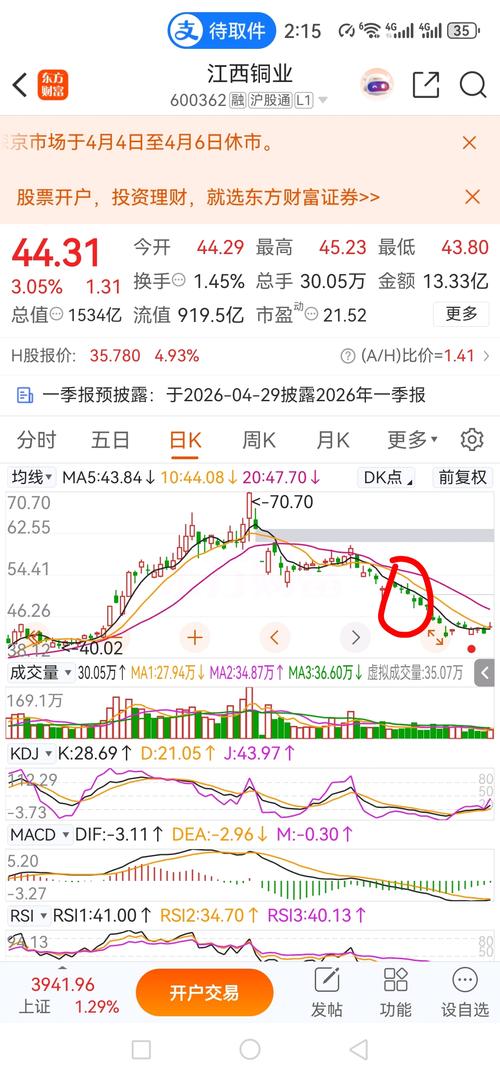 $江西铜业(SH600362)$45卖一波