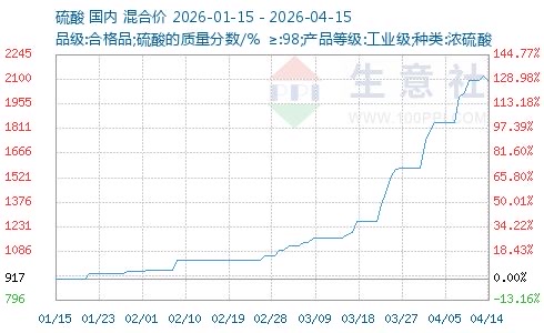硫酸价格狂飙,单月价格翻倍创历史新高