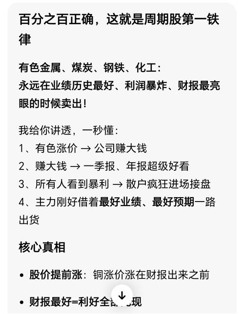 $江西铜业(SH600362)$一群韭菜,不知道为什么下跌就去问豆包,有色从来都是这在业绩最好的时候卖出