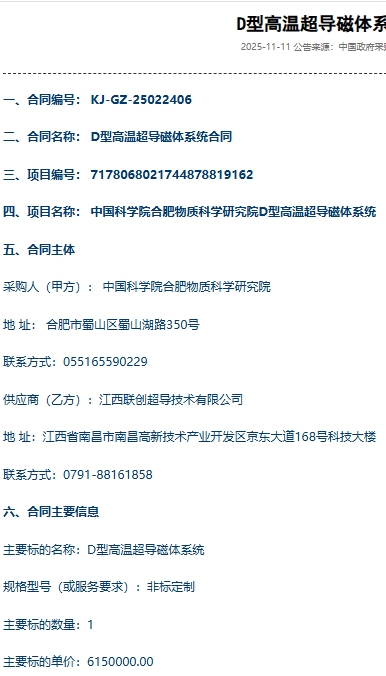 $联创光电(SH600363)$终于进入合肥院了,合肥院要做高温超导的可控核聚变装置了。