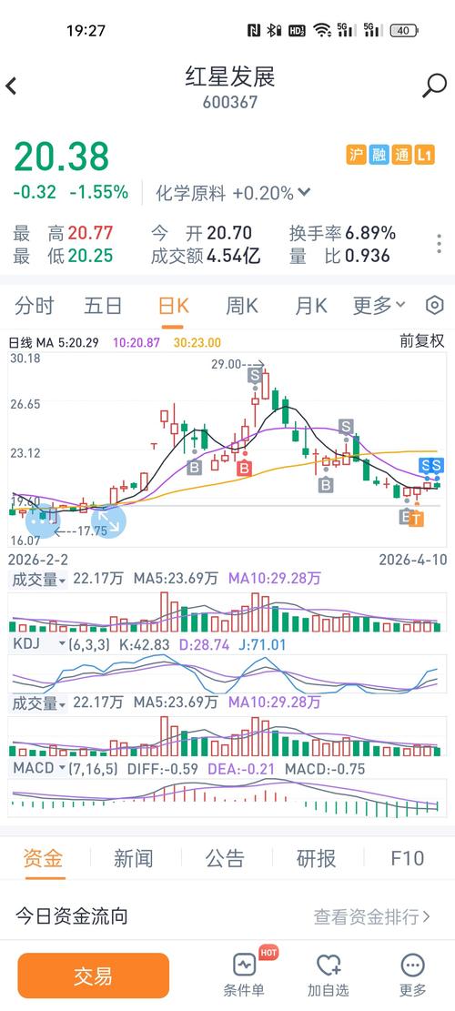 $红星发展(SH600367)$22块买进80万元,给我赚个10万就跑,套了