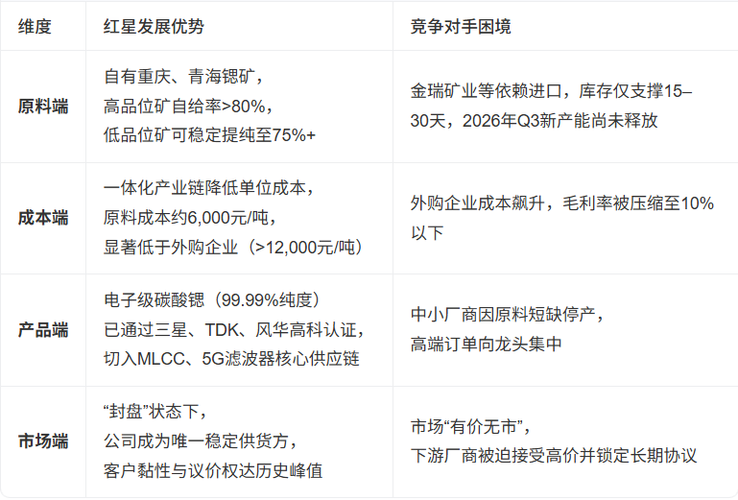 74- 掌握天青石资源的国内企业中,金瑞矿业和红星发展最具备“硬通货”属性,谁手握矿山,谁就能在封锁中赚大钱。 当前霍尔木兹海峡封锁导致伊朗高品位天青石(品位85%以上)无法出口,全球供应链陷入“硬缺货”周期,而中国作为全球最大的碳酸锶加工国,70%的进口依赖被切断,正加速转向国内资源替代。在此背景下,真正拥有自有矿山、实现原料自给的企业,将成为最大赢家。 1. 金瑞矿业(600714):储量龙头,资源护城河最深 控股青海大风山锶矿,探明储量约1500万吨,为国内最大、全球品位较高(35%-60%)的天青石矿,资源保障能力极强。 现有碳酸锶产能2万吨/年,在建4.5万吨项目将于2026年底投产,总产能将达6.5万吨/年,是国产替代的核心力量。 采用露天开采+浮选工艺,吨矿成本比进口低15%-20%,在高矿价环境下盈利弹性突出。 原料100%自给,不受外部断供影响,是地缘冲突中最确定的受益者。 2. 红星发展(600367):品位领先,技术+资源双驱动 虽无自有矿权,但控股四川铜梁玉峡锶矿(品位59.35%)和重庆大足兴隆黄泥堡锶矿(品位54.68%),是国内单一矿区中平均品位最高的。 与地方国企(足锶矿业)深度绑定,通过控股子公司保障原料稳定供应,虽非完全自给,但供应链可控性强。 现有碳酸锶产能3万吨,2025年6月新增6万吨产能已投产,总产能达9万吨,国内市占率超30%。 碳酸锶价格每上涨1万元/吨,净利润增厚超2亿元,在当前价格飙涨至2万元/吨以上的背景下,业绩弹性巨大。