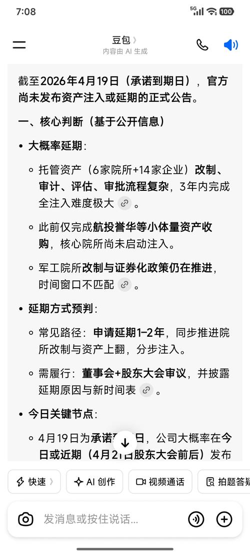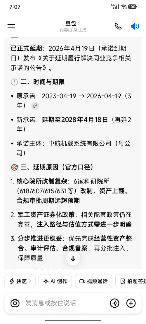 $中航机载(SH600372)$ 公司当前态度 截至目前,中航机载官方尚未就“承诺到期未完成”的可能性发布任何公告或说明。投资者在互动平台上的相关提问,也未得到关于是否会延期或如何应对违约风险的明确答复。 因此,虽然承诺中明确了违约的严重后果,但最终是否会触发这些条款,以及具体如何执行,仍需等待承诺到期日(2026年4月19日)临近时公司的正式公告。