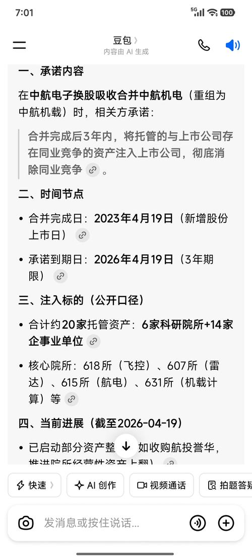 $中航机载(SH600372)$中航机载(原中航电子)在三年前搞了一个高达486亿的“世纪大合并”(吸收合并中航机电),把自己打造成了军工机载领域的绝对龙头。但在当时,大股东手里还有一部分同类型的机载业务和资产没装进来,为了安抚中小股东并避免同业竞争,大股东拍胸脯立下了这个“三年之约”。 静待结果。