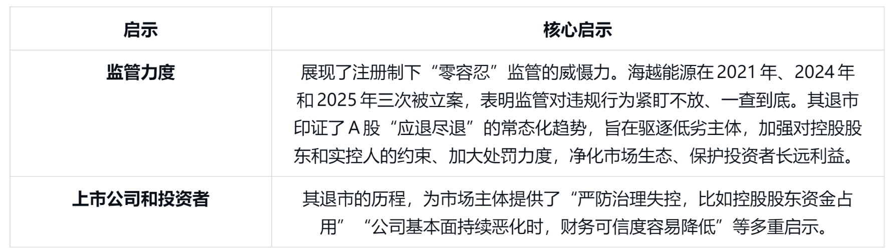 海越能源:退市令人唏嘘,投资者的挽损路径(索赔时段)—— |卷首语:一家拥有21年上市历史的老牌企业,命运在2025年急转直下,最终走向退市,确实可惜了。 但海越能源的案例,也为资本市场的不同参与者,都提供了丰富的启示。 一、分析:海越能源的退市之路 海越能源的退市并非单一事件导致,而是公司治理失效、财务问题累积与监管持续收紧共同作用的结果。 退市直接的导火索,是2023、2024连续两年的财务报...