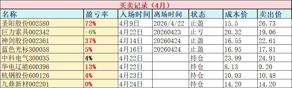 建仓$华电辽能(SH600396)$华电辽能:华电集团旗下区域能源央企,主营电力热力保供,火电稳基、新能源提速,兼具民生属性与成长潜力,今日新仓布局,静待后续行情演绎。 止盈$青山纸业(SH600103)$青山纸业:作为国有控股造纸龙头,纸袋纸市场占有率全国第一,叠加光电子业务与绿色转型预期,近期走势符合预期,已按计划止盈离场,落袋为安。 建仓:$大胜达(SH603687)$尾盘加入上车博弈 以上...