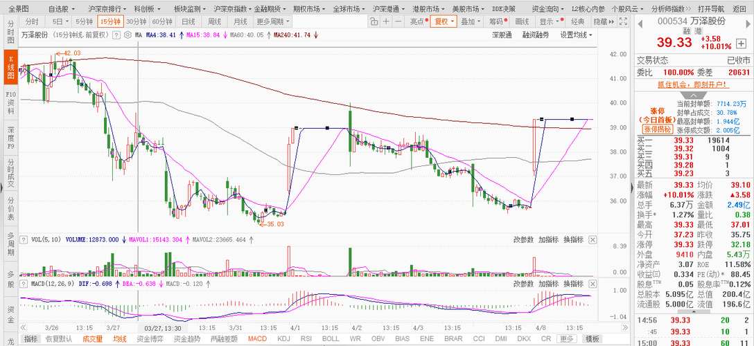 核心标的走势复盘(仅供参考,不构成买卖建议) 国电南瑞(600406)电网行业具备较强地位,处于相对稳定的发展阶段,现在股价处于阶段性区间位置,业绩也一直很稳,今天资金动作很明显,资金参与度有所提升,成交额有22.02亿,看得出来是主力在明显回补,市场参与结构有所变化。业绩表现相对稳定,已体现一定增长。技术上就是短期走势有所变化,涨了4.07%量能开始放大,期待中可能带来一定走势修复。 万泽股份(...