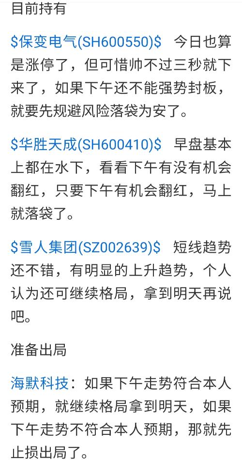 $保变电气(SH600550)$$华胜天成(SH600410)$$雪人集团(SZ002639)$ 海默科技,湖南黄金