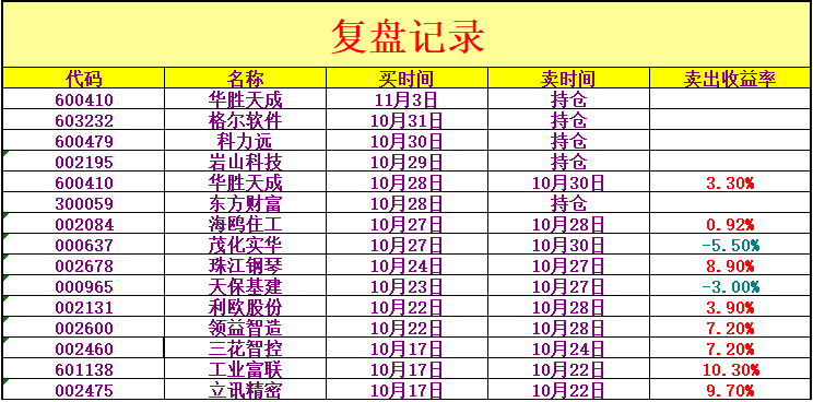 11.04:华胜天成、格尔软件、东方财富、科力远、岩山科技。