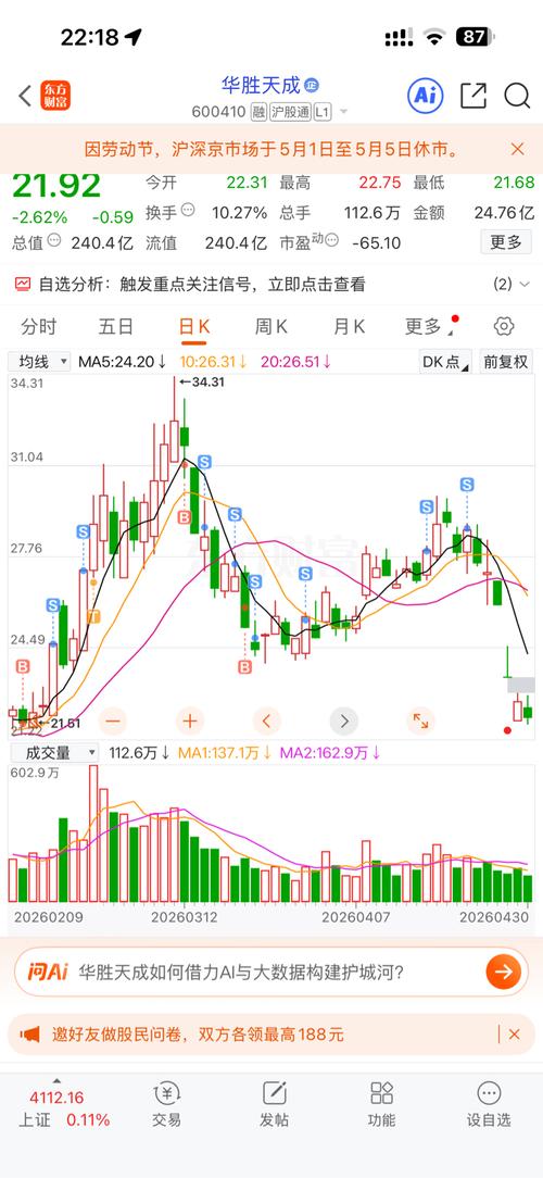 各位朋友,我看到大家的留言了。不少人持有华胜天成$拓维信息(SZ002261)$持仓心态起伏很大,甚至一度有割肉的想法。我想问大家:目前华胜天成,究竟是处于短期阶段高点,还是短期低位? 今天拓维信息若午后冲击涨停,大概率会带动华胜天成同步走强。我的建议是,大家尽量不要盲目割肉。五一假期过后,市场大概率会迎来整体回暖。当前节前资金离场已经基本结束,节后新资金会逐步进场,大家不妨耐心观察、静观其变,不...