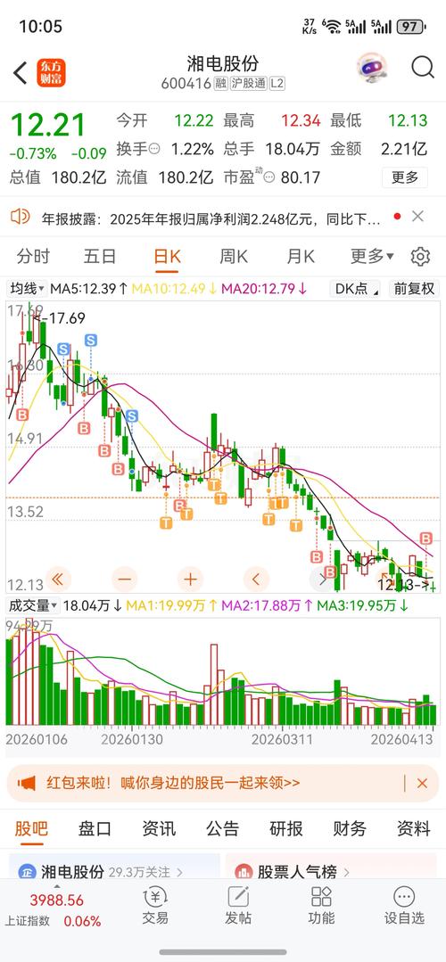 $湘电股份(SH600416)$十五个交易日碰了三次12.13底点,明天是下向下破还是向上