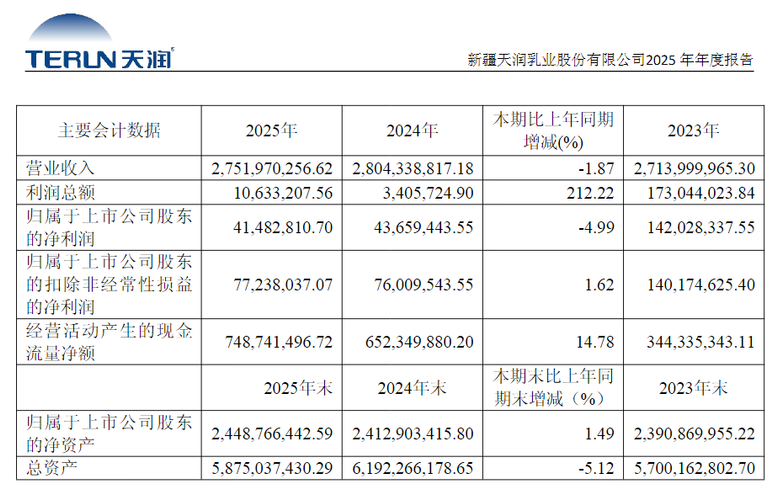资讯 天润乳业:公司2025年营收同比下降1.87%