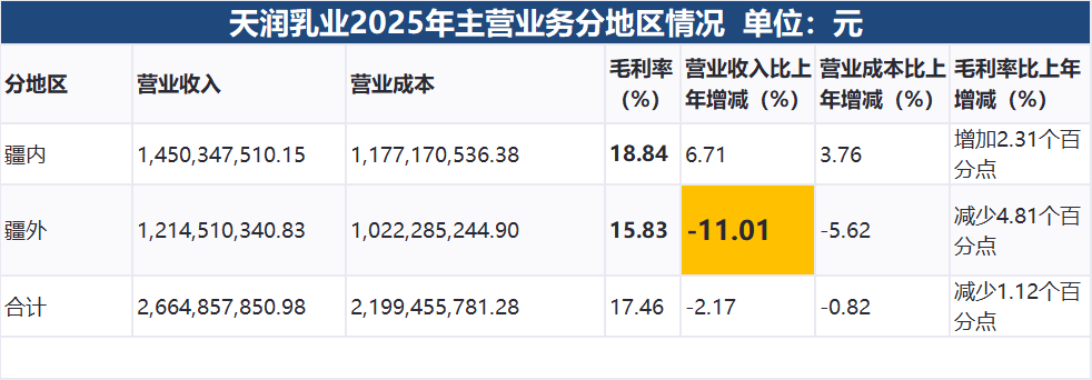 本文记录看天润乳业2025年年报时的想法。 一、重点关注疆外收入的增长情况 乍一看天润乳业2025年业绩可以说是平淡无奇,公司实现营收27.52亿元,但是净利润只有4148.28万元,净利率0.52%;也就是说,公司几乎是不赚钱的。 2023年公司还有1.4亿元的年净利润,净利率大约还能达到3%;因此,2025年公司虽然没有亏损,但这业绩确实不好。 但是再往下看,就会发现2025年公司也做过一些事...