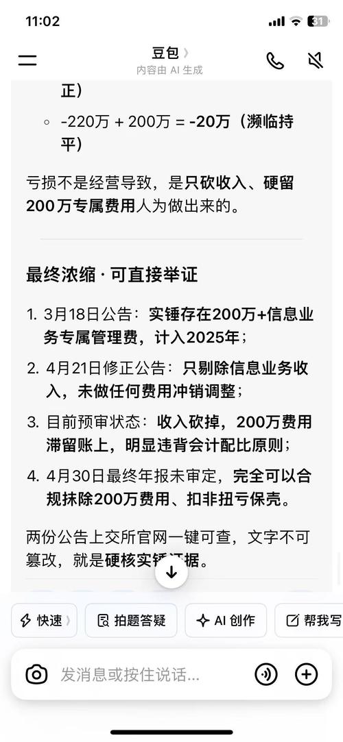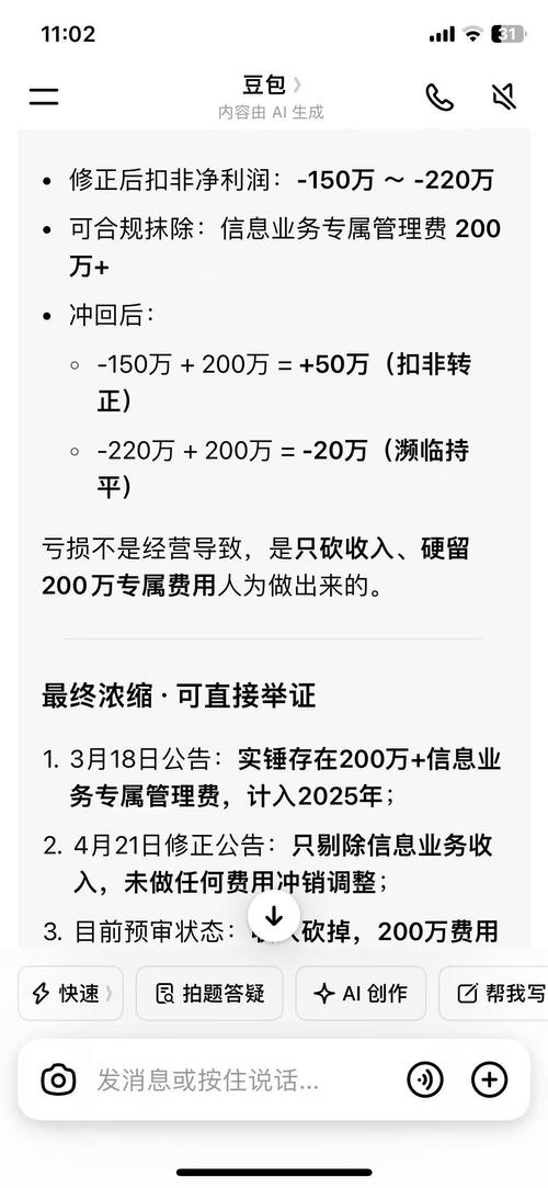 4.21的修正公告里只扣减了信息业务营收3271万 没同步抹除藏在管理费用里的人员薪酬等费用200万.有实锤证据. 审计最终得再次修正,最终扣非为正.不然违法. ........................ 没让你们买,你们也不敢买. 包工头这回坏透了.大家可以自己豆包上查..