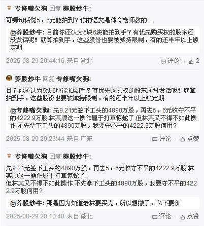 你们还没看明白吗?专修哥最近算是看明白了. 林某顺就是守平同&志请来的托. 一拖再拖被两次监管函后.把戏给演砸了. 目前只能做个中介二道贩子角色来补救. 三季报股东人数6377人了,说明有人暗中于二级市场4月以来低价一路吸了足够多的货. 这得占用不少资金.而后再9.21元收购价去执行工头4890万股合约实在心有余而力不足. 后面林某估计是把"伯程汇能科技中心"和二级市场吸的暗筹一起加价转让给新的实...