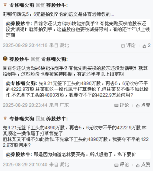 喊话林某某:没那个实力,你来演个啥子戏?这不,作茧自缚把自己快演成股东鸟吧?