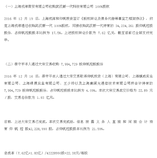 多事的7月.守不平4222.9万股的法&拍一拍流拍后,二拍7月底刚上拍时.迅即又下架 原来是林某顺莫名其妙的急着以高出市价近40%多的价格9.21元去买工头4890万股并签定合同 而守不平的二拍价只5.22元,法拍总数也有4222.9万股.并不比工头的4890万股少多少. 5.22不买去9.21买?这是钱多任性还是故弄炫虚?二拍2个包流拍结果出来后证明是后者 由此可见,那个林某顺本就是守不平请来救...