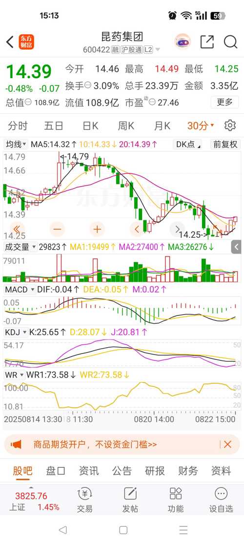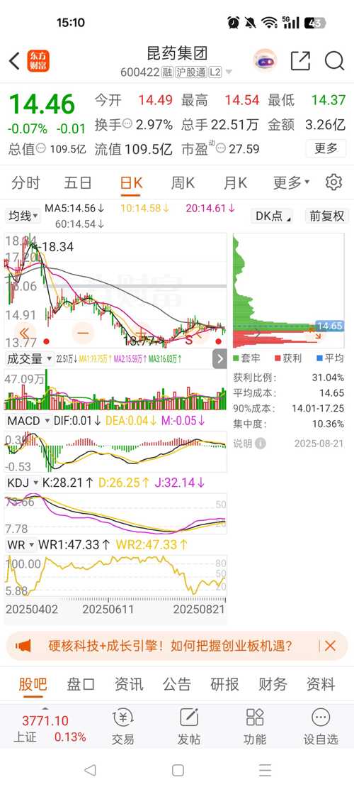 $昆药集团(SH600422)$ 本贴个人实战贴,符合自己性格的交易方式,不对他人构成任何操作建议。 2025年8月21日 介入60422 价位14.40元 目标10%