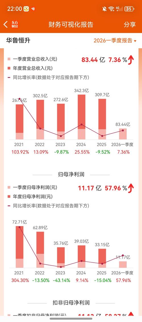 从这份华鲁恒升2026年一季度财报来看,公司经营呈现收入稳健增长、利润大幅修复的积极态势。 一季度营收83.44亿元,同比增长7.36%,增速较2025年全年的-9.52%明显回升,表明下游需求或产品价格有所改善。但需注意,2024年营收基数较高(342.31亿元),当前增速仍属温和修复。 更亮眼的是盈利能力: 一季度归母净利润11.17亿元,同比大增57.96%。相比之下,2023、2024、2...