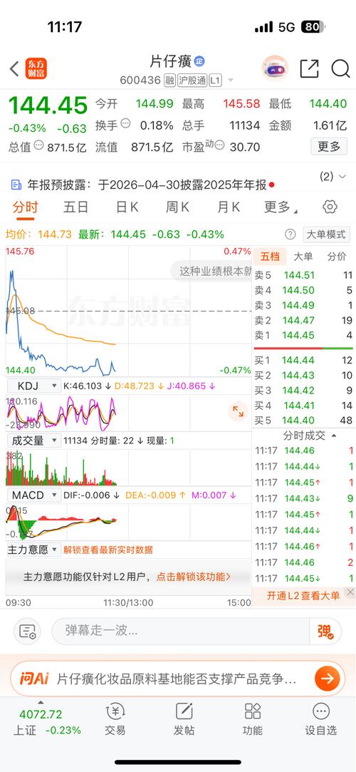$片仔癀(SH600436)$懒得等140了。144.5加了500股。目前1000股。成本164。1.5成仓位