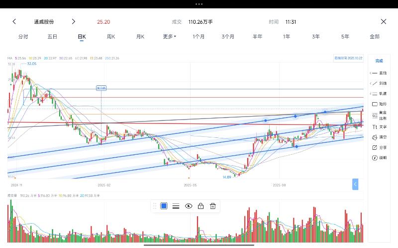 $通威股份(SH600438)$日内分时M头弱反抽,日线级别上升通道上沿触及,持续降仓位至4成,光伏回调要开始了。不会那么顺利带着一堆获利散户冲击压力区的,至少昨天的大阳线中间部分要接受回踩挑战,但也可能踩得更深更绝望。 当然小概率我可能会踏空部分,但没关系,我的四成底仓会雷打不动陪阿威走到28+ 资金开始回流科技。 好好交流说话,别无脑瞎喷
