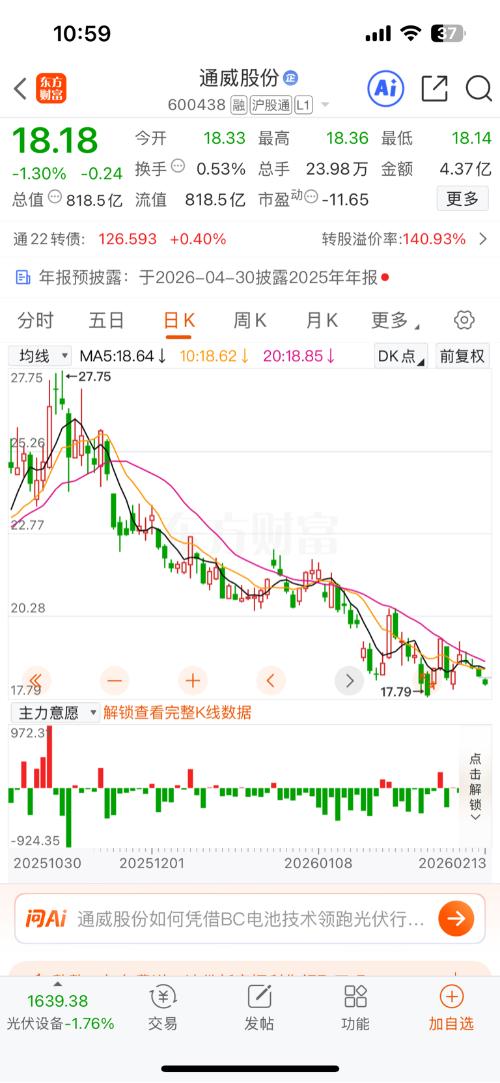$通威股份(SH600438)$16.68竞价高开,5分钟级别冲击18以上。