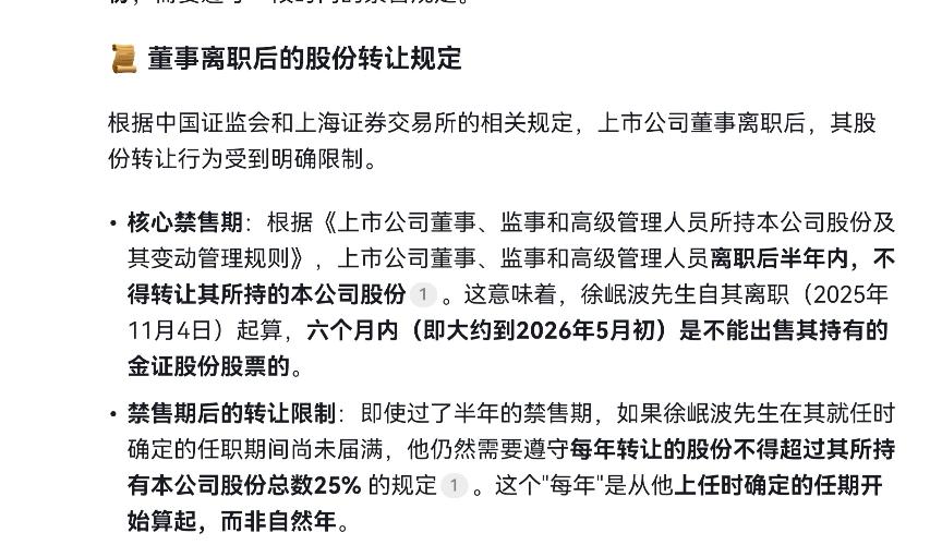$金证股份(SH600446)$《公司法》规定,徐董事离职内6个月内不能减持股份。