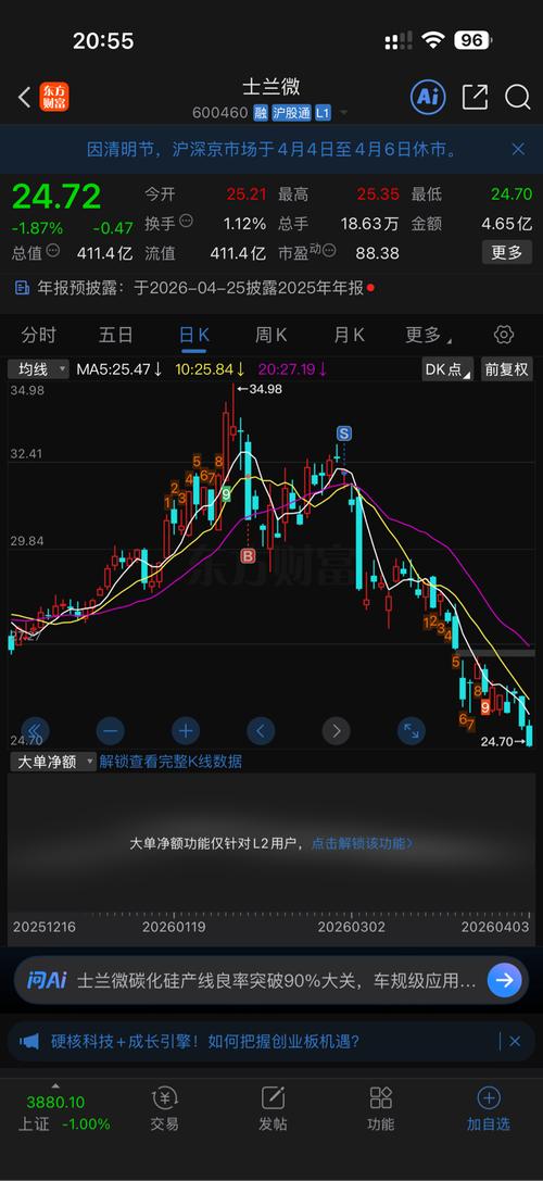 今天半导体板块动了,可是士兰微还是下挫。士兰微在半导体产业上有它独到的优势,可是价格摆着,它算得上是低的了。从技术实力看,它是国内功率半导体的领跑者。那为什么会被冷落呢?或许更多是市场情绪、资金流向 ,以及炒作节奏等多种因素综合作用的结果罢。