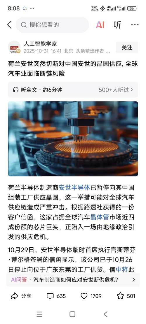#社区牛人计划#兄弟们发现没?最近芯片圈出了个大新闻——安世中国官宣恢复给欧洲车企供芯片,但直接甩了三个硬条件!这可不是普通的供货,这是咱中国企业在全球芯片链上“立规矩”啊! 先说说安世有多牛。它以前是飞利浦的半导体部门,现在是车规级芯片的“隐形大哥”——全球每10辆车里,7辆都用它的芯片,车规功率芯片市场直接占了一半!关键是,它的核心产能全在咱中国!...