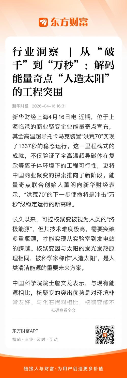 $百利电气(SH600468)$ “长久以来,可控核聚变被视为人类的“终极能源”,但其技术难度极高,需要突破多重瓶颈,才能实现从实验室到发电站的跨越。核聚变因与太阳的发光发热原理相同,被科学家称作“人造太阳”,是人类清洁能源的重要未来方案。”