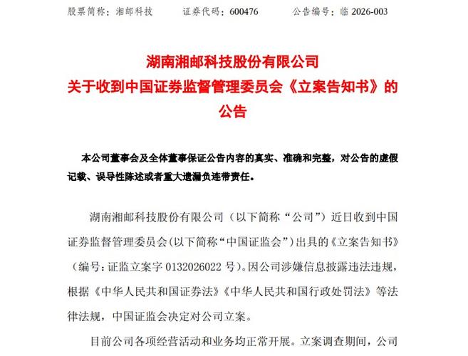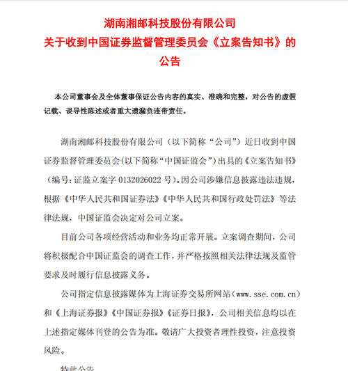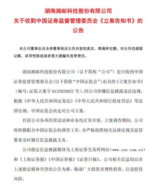 湘邮科技26年被立案调查中,受损投资者可索赔