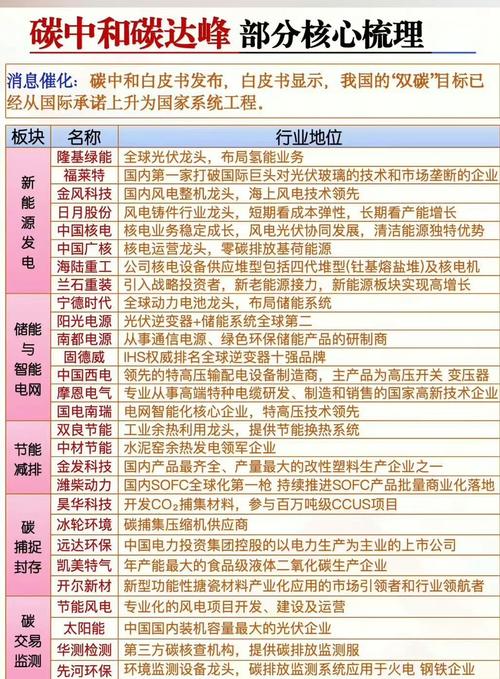 $华电辽能(SH600396)$4月22日中办、国办发布《关于更高水平更高质量做好节能降碳工作的意见》对外发布。 在“双碳”目标持续推进的背景下,碳中和产业链从能源替代、节能减排到资源循环、碳汇管理等多个环节迎来发展机遇。以下梳理具有核心竞争力的相关股票,结合其业务布局与业绩表现,解析其投资逻辑与成长潜力。 龙源电力:作为国内风电运营领域的领军企业,龙源电力在新能源装机与发电规模上保持领先。202...