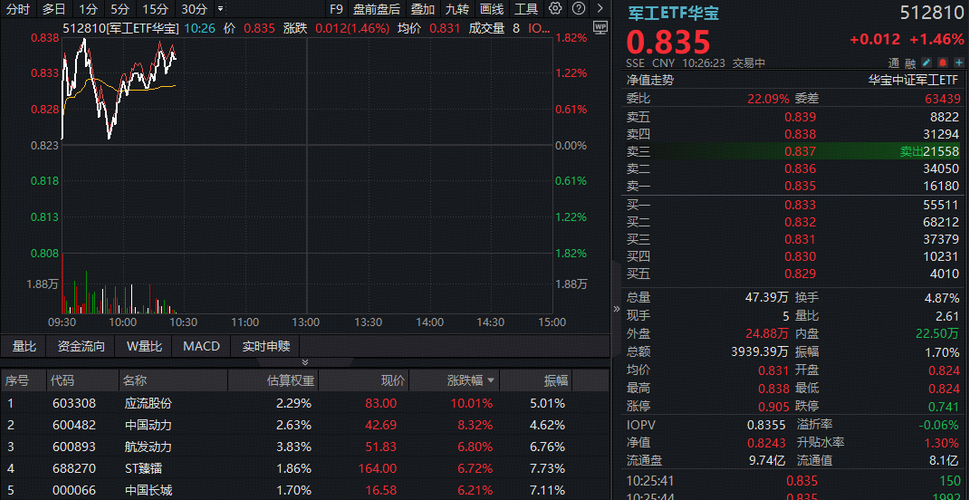 多重利好提振,军工逆市走强,华宝基金军工ETF上探1.82%!中国动力触及涨停,应流股份封板创新高!