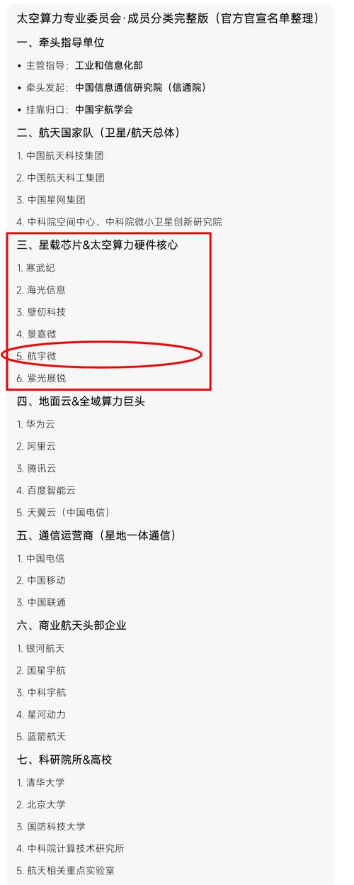 航宇微300053太空算力玉龙810/(最先进突破美垄断,并量产,寒武纪太空算力芯还在测试阶段)抗辐照AI芯片就2家,是未来20万颗卫星的标配:航宇微深度参与国星宇航和‘之江实验室’,他们的实验室的算力芯片也是航宇微提供的,另外它是太空算力协会成员单位:与中科院计算所合作**“一星多卡”星载算力架构**,从芯片供应商升级为太空算力方案商,支撑低轨星座大规模组网。航宇微是A股中太空算力协会中市直最小...
