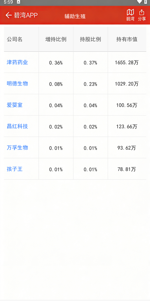 今天刷碧湾APP的时候瞄了眼辅助生殖板块的基金持仓变动,发现津药药业被加仓挺明显的——增持0.36%,现在持股比例0.37%,对应市值1655万左右。其他像明德生物、爱婴室、昌红科技和万孚生物也有小幅增持,但幅度都不大。尤其$津药药业(600488)$这波动作,是不是有啥新消息要来了?感觉最近这板块有点动静,但又拿不准该不该跟,老铁们怎么看?