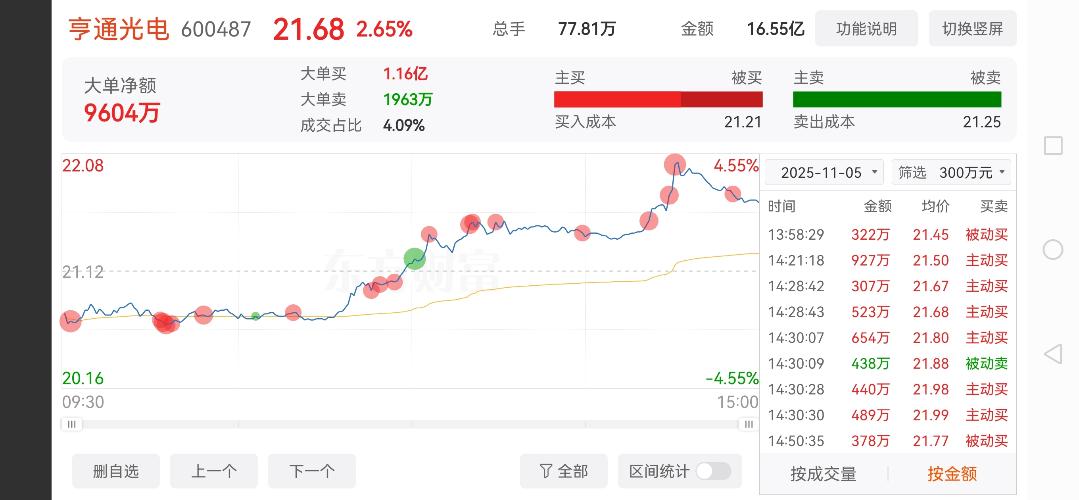 $亨通光电(SH600487)$亨通大单资金抢筹明显,看明天表现了