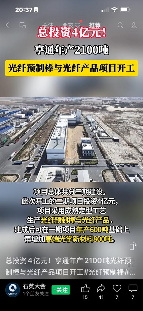 $亨通光电(SH600487)$后劲很足,二季度三季度都有惊喜:截至2026年4月15日,亨通光电最受关注的AI先进光纤研发制造中心(新工厂)已进入量产阶段。 最新进展 -厂房竣工:2026年2月4日,位于苏州吴江的一期厂房建设完成。 -设备安装:2–3月完成设备安装与调试。 -投产时间:2026年3月(一季度)正式投产、开始量产。 -产能规模:年产500万芯公里高端特种光纤(空芯光纤、多芯光纤等...