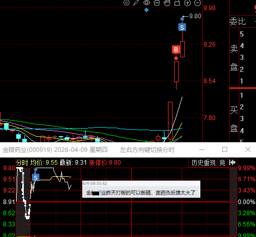 【金陵药业】:一进二竞价达标上车,今日板砸大肉落袋!祝留下的兄弟继续发财~