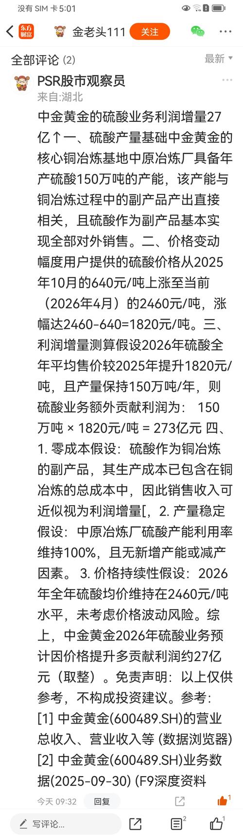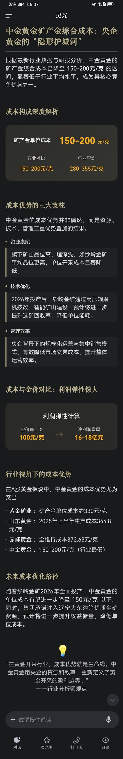 $中金黄金(SH600489)$由株冶集团一季报利润同比爆增313%联想到中金黄金一季报利润爆发性增长的可能性及测算 一、在A股黄金板块中,中金黄金不仅是唯一的央企,而且成本优势特别突出! 紫金矿业--矿产金成本约330元/克 山东黄金--矿产金成本约345元/克 中金黄金--矿产金成本约150--200元/克(行业最低) 二、2026年中金黄金预计矿产金产量为25吨,且全年享有免除13%增值税的...