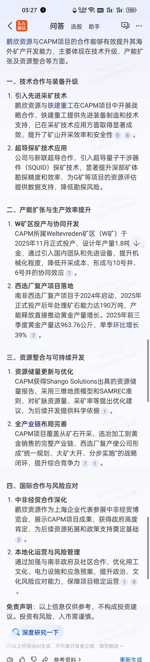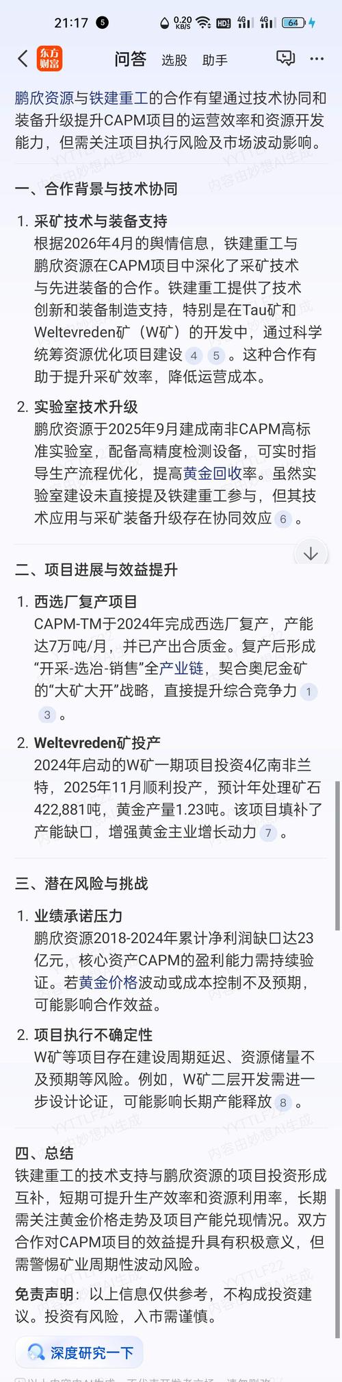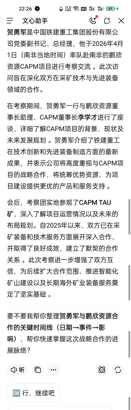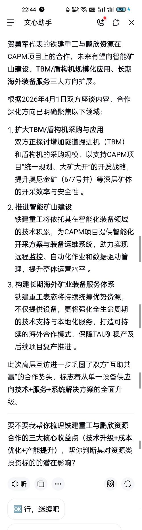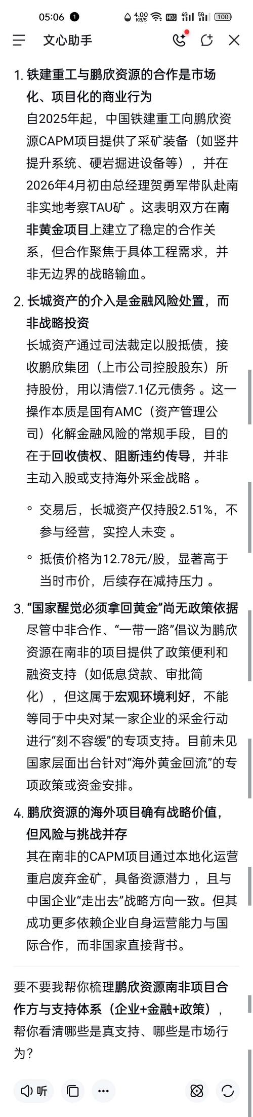 $鹏欣资源(SH600490)$鹏欣资源正与中国铁建合作~,将加速扩大黄金釆矿设备等大规模投入……