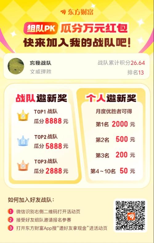 邀股友组战队,齐努力争胜利; 分成果享喜悦,快加入期待您。 多谢了队友们,多谢入队和支持; 互关注多联系,互学习共进步。 本队战果如下:#【有奖】第四届全国ETF菁英挑战赛重磅来袭!#