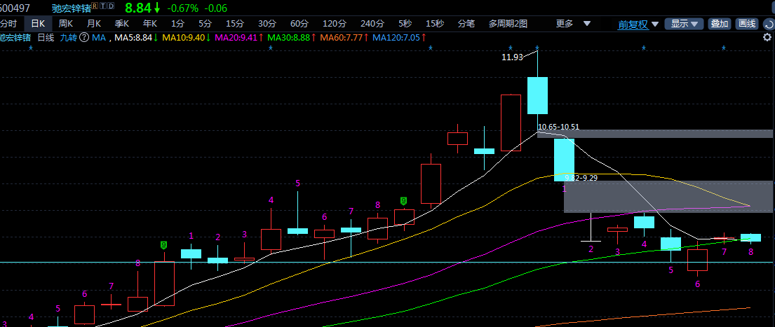 $驰宏锌锗(SH600497)$耐心等待回补7.87缺口再买吧!!!